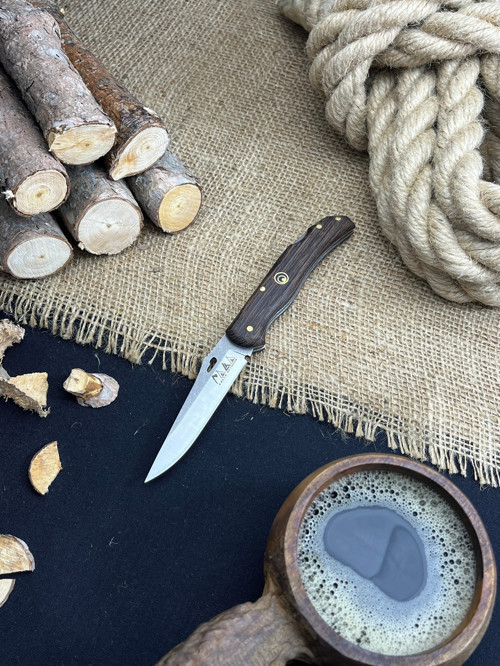 Palta Outdoor Outdoor Bıçak Piknik Çakısı Kamp Bıçağı Sivri Kilitli Deri Kılıf Hediyeli Venge Ağacı Saplı Çakı
