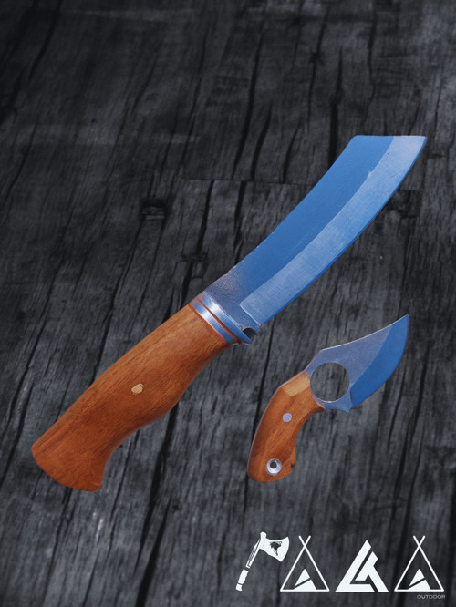 Satır Model Bushcraft Bıçak Taktik Kolye Bıçak 2'li Set Ceviz Saplı Deri Kılıf Hediyeli