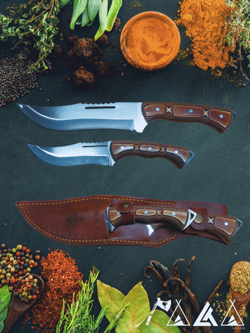 Verzalit Saplı Baba-Oğul Bıçak Seti 2'li Set Paslanmaz Çelik Deri Kılıf Hediyeli