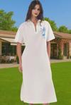 Yumuşak ve ince dokusuyla teninizde hoş bir his uyandıran pamuk vual kumaş, gün boyu konfor ve ferahlık sağlar. Maxi boy tasarımı ile şıklığınızı ön plana çıkarırken, rahat kalıbı sayesinde hareket kısıtlaması yaşamazsınız. Kısa ve standart kol detayları, yaz sıcağında bile serin kalmanıza yardımcı olurken, gömlek yaka tasarımı ise şıklığınıza zarif bir hava katar. Ayrıca, makinede yıkanabilme özelliği sayesinde bakımı oldukça kolaydır.