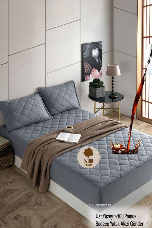Pamukkale Renkli Alez Gri Kapitone Sıvı Geçirmez Yatak Koruyucu Fitted Alez Çarşaf (16 Ebat)