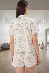 Evde rahatlığınızı ve stilinizi bir arada sunan bu Ekru renkli pijama takımı, %100 pamuklu örme kumaştan üretilmiştir. Galaksi deseniyle tarzınıza modern bir dokunuş katar. Regular kalıbı ve normal bel boyu ile gün boyu rahatlık sağlar. Kısa kollu gömlek ve boru paça şorttan oluşan takım, yaz aylarında serin kalmanıza yardımcı olur. Biyeli detayı ise, şık ve özenli bir görünüm kazandırır.