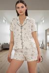 Materyal:%100 Pamuk, Desen:Galaksi, Renk:Ekru, Yaka Tipi:Gömlek Yaka, Ürün Detayı:Biyeli, Kalıp:Regular, Bel:Normal Bel, Paça Tipi:Boru Paça, Boy:Regular, Alt-Üst Takım:Gömlek-Şort, Kol Boyu:Kısa, Menşei:TR