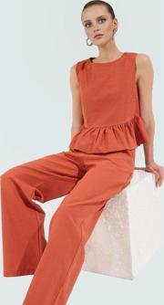 Yumuşak ve hafif yapısıyla teninizde ipeksi bir his bırakacak bu takım, gün boyu size eşlik edecek. Dokuma kumaş yapısı sayesinde nefes alabilir özelliği ile yaz sıcağında dahi rahat hissetmenizi sağlar. Bisiklet yakası ve fırfır detaylarıyla her kadının gardırobunda olması gereken zamansız bir parça. Geniş paçalı pantolon, her vücut tipine uyum sağlayarak şık ve modern görünmenizi sağlar.