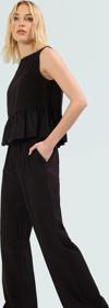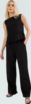 Yumuşak ve hafif yapısıyla teninizde ipeksi bir his bırakacak bu takım, gün boyu size eşlik edecek. Dokuma kumaş yapısı sayesinde nefes alabilir özelliği ile yaz sıcağında dahi rahat hissetmenizi sağlar. Bisiklet yakası ve fırfır detaylarıyla her kadının gardırobunda olması gereken zamansız bir parça. Geniş paçalı pantolon, her vücut tipine uyum sağlayarak şık ve modern görünmenizi sağlar.