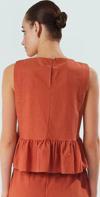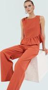 Kadın Pera Keten Kumaş Halka Detaylı Sırt Metal Fermuarlı Bel Gizli Fermuarlı Büstiyer Pantolon Takım - Image 1
