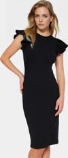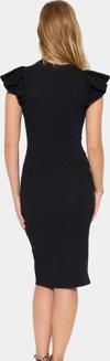 Elbisenin bodycon kalıbı, vücut hatlarınızı zarifçe sarar ve kusursuz bir siluet oluşturur. Kısa ve büzgülü fırfırlı kolları, elbiseye hareketlilik ve feminen bir hava katıyor. Volanlı detaylar ise elbiseye romantik bir dokunuş ekleyerek, şıklığını bir üst seviyeye taşıyor. Astarsız yapısıyla yaz aylarında serin ve rahat hissetmenizi sağlar.