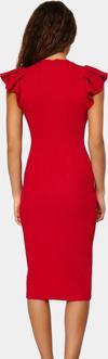 Elbisenin bodycon kalıbı, vücut hatlarınızı zarifçe sarar ve kusursuz bir siluet oluşturur. Kısa ve büzgülü fırfırlı kolları, elbiseye hareketlilik ve feminen bir hava katıyor. Volanlı detaylar ise elbiseye romantik bir dokunuş ekleyerek, şıklığını bir üst seviyeye taşıyor. Astarsız yapısıyla yaz aylarında serin ve rahat hissetmenizi sağlar.