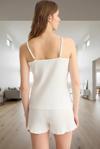 Evde rahatlık ve şıklığı bir arada arayanlar için mükemmel bir seçim! %100 pamuktan üretilen bu beyaz çizgili pijama takımı, ince askılı atlet ve fitilli şorttan oluşur. Yumuşak dokusuyla cildinizde ipeksi bir his bırakırken, regular kalıbıyla da gün boyu rahat hareket etmenizi sağlar. V yakalı atlet üstü ve şık çizgili deseniyle, evde vakit geçirirken bile tarzınızdan ödün vermenize gerek yok. Nefes alabilen pamuklu kumaş, yaz aylarında da serin kalmanıza yardımcı olur.