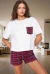 Ersefa Pamuklu Ekose Pijama Takımı Kısa Kollu Regular Yazlık Ev Giyim Zarifane Tasarım Mükemmel Uyum