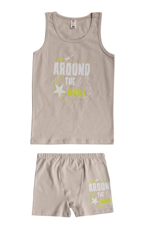 Erkek Çocuk Pamuklu Önü Baskılı Süprem Kalın Askılı Atlet Şort İç Giyim Takım | 32056