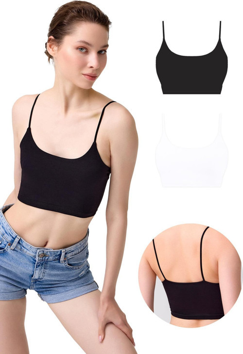 Pamuklu İnce Askılı Kadın Crop Top Büstiyer 2'li Paket