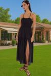 Maxi boyu ve kolsuz tasarımıyla hem plaj için ideal hem de günlük kombinlerinizde şık bir alternatif oluşturur.