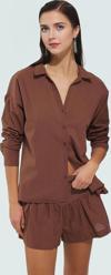100% pamuk kumaşın yumuşak dokusu ve nefes alabilir yapısı, yaz sıcaklarında serin kalmanıza yardımcı olur. Dik yakası ve uzun kolları şık bir görünüm sunarken, fırfırlı şort detayı ile feminen bir hava katıyor. Bol kesimiyle vücudunuza yapışmaz, özgürce hareket etmenizi sağlar. Hem plajda hem de günlük hayatta rahatlıkla kullanabileceğiniz bu takım, farklı aksesuarlar ve alt parçalara uyum sağlayarak stilinize çeşitlilik katacaktır. Ütü gerektirmeyen yapısı ve kolay yıkanabilir özelliği ile yaz aylarının vazgeçilmez parçası olacaktır.