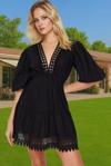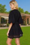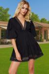 Bu nefes alabilen ve hafif pamuklu mini elbise, yaz günlerinde mükemmel bir seçim. V yaka tasarımı ve zarif dantel detaylarıyla feminen bir görünüm sunarken, rahat skater kalıbı ve balon kolları ile konforu ön plana çıkarıyor. Plajda veya günlük hayatta şıklığınızdan ödün vermeden rahat hareket etmenizi sağlar.