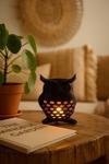 baykuş mumluk, dekoratif mumluk, seramik mumluk, siyah mumluk, tealight mumluk, bohem mumluk, rustik mumluk, dekoratif ev aydınlatma, mistik mumluk, hediyelik mumluk, el yapımı mumluk,