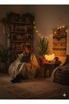 Loş amber ışık, rahatlatıcı bir atmosfer yaratırken, rustik ampul hediyesi ile birlikte gelir.