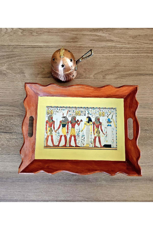 Panda Hediyelik El Yapımı Ahşap Boyama Tepsi – Antik Mısır Koleksiyonu Mısır Duvar Yazıtları
