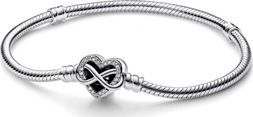 Aileyi birbirine bağlayan sonsuz sevgiyi temsil eden Pandora Moments Işıltılı Sonsuz Kalp Klipsli Yılan Zincir Bileklik senin için en önemli olanlar için anlamlı bir hediye. Kafes işi kalp klipsinde, kenarlarında taşlar ve kalbin etrafına yerleştirilmiş asimetrik bir sonsuzluk sembolü yer alıyor. Klipsin arkasında “Family forever and Always” yazısı bulunuyor. Bileklikte, onu üç bölüme ayıran iki diş (yükseltilmiş charm ayırıcılar) bulunmaktadır. Sevdiklerini simgeleyen 16-18 adede kadar favori charm veya sallantılı charm’larınla birlikte kullan veya kalbindeki birine hediye et.