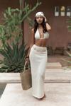 Elastik bel, A kesim midi boy triko etek. Transparan, astarsız.