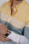 Panolu Sarı Yeşil Çizgili Keten Slimfit Erkek Gömlek