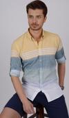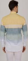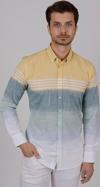 Etikmen Panolu Sarı Yeşil Çizgili Keten Slimfit Erkek Gömlek