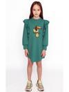 Göğsünde papağan işlemeli örme elbise