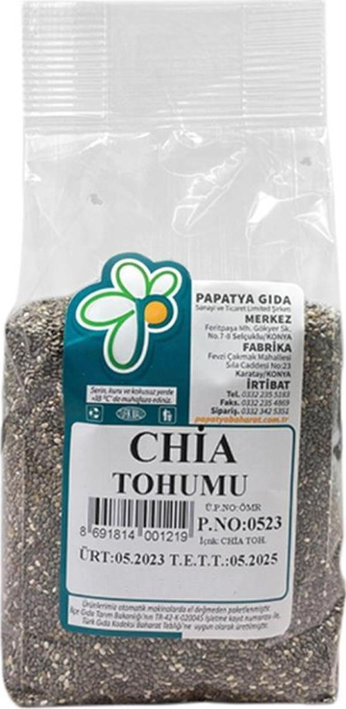 Papatya Gıda Chia Tohumu, en kaliteli ve taze chia tohumlarını sizlere sunar. Bu ürünü yoğurt, smoothie, salata veya tatlılarınıza ekleyerek beslenmenizi zenginleştirebilirsiniz. Chia tohumları, sıvı ile temas ettiğinde jelleşme özelliği gösterir.