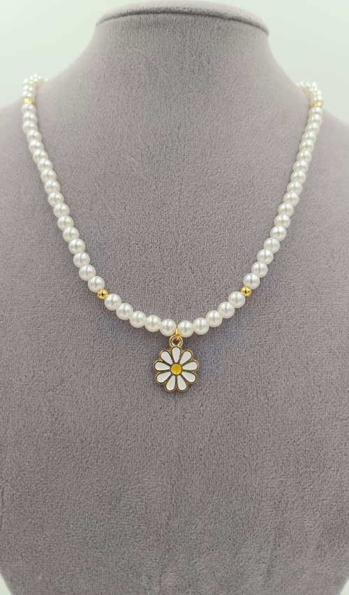 Papatya Işıltısı – Altın Detaylı İnci Kolye