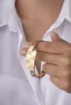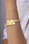 şıltıyı zarafetle buluşturan altın kaplama çelik kelepçe bilezik, stil sahibi kadınların vazgeçilmez aksesuarı olmaya aday. Paslanmaz çelik üzerine uygulanan kaliteli altın kaplama sayesinde uzun ömürlü ve dayanıklı olan bu bilezik, çizilmelere karşı dirençli yapısıyla her daim ilk günkü parlaklığını korur.