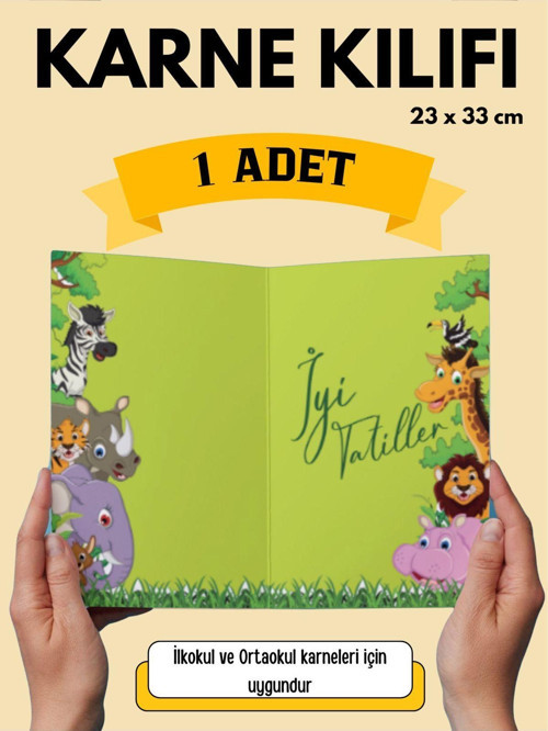 Hayvanlar temalı karne kılıfı, çocukların yaz tatilini eğlenceli hale getirir ve not defterlerini sevimli bir tasarımla korur
