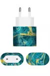 PapsCover Apple 20W Şarj Aleti Kaplama Mistik Turkuaz Dalga