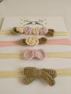 Bu el yapımı ve organik saç bandı seti, her biri özenle tasarlanmış dört farklı örgü motifli saç bandından oluşur.