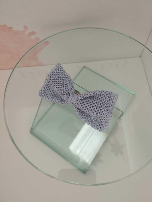 Bu el yapımı örgü fiyonk toka, PapyonBaby0 markasının zarif tasarımıyla dikkat çeker.
