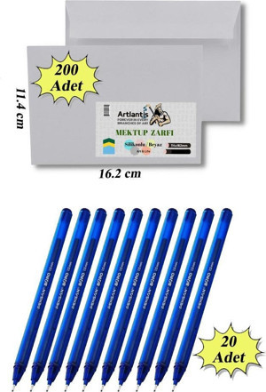Artlantis Düğün Para Takı Zarfı Ağzı Yapışkanlı 200 Adet Ve 20 Adet Tükenmez Kalem Artlantis Takı Zarfı Beyaz Yapışkanlı