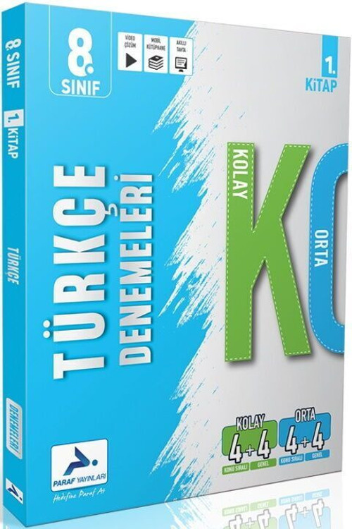 PRF Paraf Yayınları Paraf 8. Sınıf LGS Türkçe Kolay ve Orta Denemeleri Çözümlü 1. Kitap Paraf Yayınları
