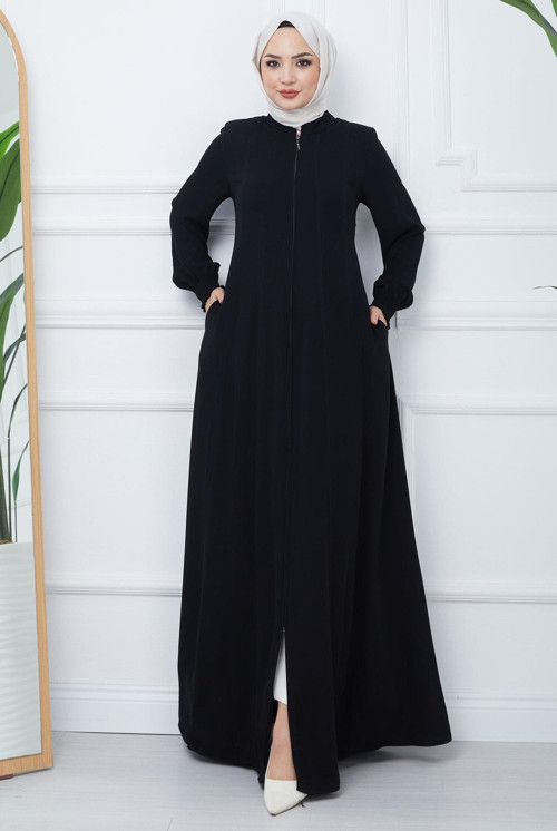 Ürün Özelliği : Boydan fermuarlı hakim yakası Mevlana Ferace modelidir. Önden fermuar ile kapanmaktadır. Hakim yakadır, manşeti lastik gipelidir. Boydan parçalı detayları mevcuttur. Omuzları vatkalı, astarsızdır. Ürün renginde konsept çekimlerinden dolayı ton farklılığı olabilir.
