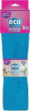 Parex Eco üçlü mikrofiber bez seti açık renk tonlarından oluşmaktadır. Her bir bez farklı yüzeylerde kullanıma uygundur. Mikrofiber dokuma teknolojisi ile üretilen bezler kuru veya ıslak olarak kullanılabilir. Standart boyutlarda olan bu temizlik bezleri çamaşır makinesinde yıkanabilir. Ürün paketi içerisinde üç adet mikrofiber bez bulunmaktadır.