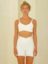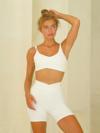 Önü geniş çapraz şerit detaylı ince askılı Comfortlux crop. Dayanıklı, nefes alabilir kumaş. Lazer kesim.