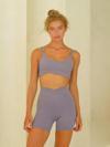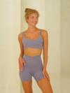 Önü geniş çapraz şerit detaylı ince askılı Comfortlux crop. Dayanıklı, nefes alabilir kumaş. Lazer kesim.