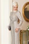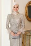 Parıltılı Kol Tüy Detaylı Şura Tesettür Büyük Abiye - Image 1
