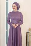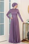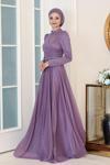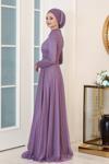Lavanta Şifon Detaylı Gliten Kumaş Şık Tesettür Abiye - Image 1