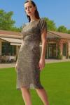 Yüksek kaliteli polyester karışımlı örme kumaş, hem dayanıklı hem de parlak bir görünüm sunuyor. Bodycon kalıp, vücut hatlarınızı kusursuz bir şekilde vurgularken, kısa ve standart kol tasarımı, her mevsim kullanımına olanak tanıyor. Kayık yaka detayı, feminen bir görünüm yaratırken, fiyonk detayı da elbisenin şıklığını tamamlıyor. Astarlı yapısı sayesinde gün boyu rahatlık hissedeceksiniz. Elbisenin payet işlemeleri, ışıltılı bir görünüm kazandırıyor ve sizi her ortamda göz alıcı yapıyor.