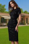 Yüksek kaliteli polyester karışımlı örme kumaş, hem dayanıklı hem de parlak bir görünüm sunuyor. Bodycon kalıp, vücut hatlarınızı kusursuz bir şekilde vurgularken, kısa ve standart kol tasarımı, her mevsim kullanımına olanak tanıyor. Kayık yaka detayı, feminen bir görünüm yaratırken, fiyonk detayı da elbisenin şıklığını tamamlıyor. Astarlı yapısı sayesinde gün boyu rahatlık hissedeceksiniz. Elbisenin payet işlemeleri, ışıltılı bir görünüm kazandırıyor ve sizi her ortamda göz alıcı yapıyor.