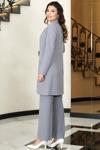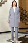 Esilanur Parla Uzun Ceket Pantolon İkili Tesettür Takım Gri