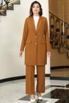 Parla Uzun Ceket Pantolon İkili Tesettür Takım Taba