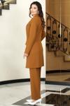 Esilanur Parla Uzun Ceket Pantolon İkili Tesettür Takım Taba