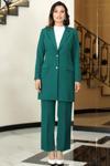Parla Uzun Ceket Pantolon İkili Tesettür Takım Zümrüt