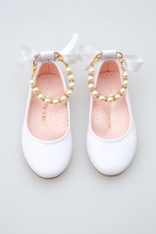 Parlak Beyaz Bileği İncili Kız Çocuk Babet - Parlak beyaz suni deriden üretilmiş, şıklığı ve rahatlığı bir arada sunan kız çocuk babet..