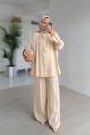 Parlak Dokulu Bol Kesim İkili Takım - Bej